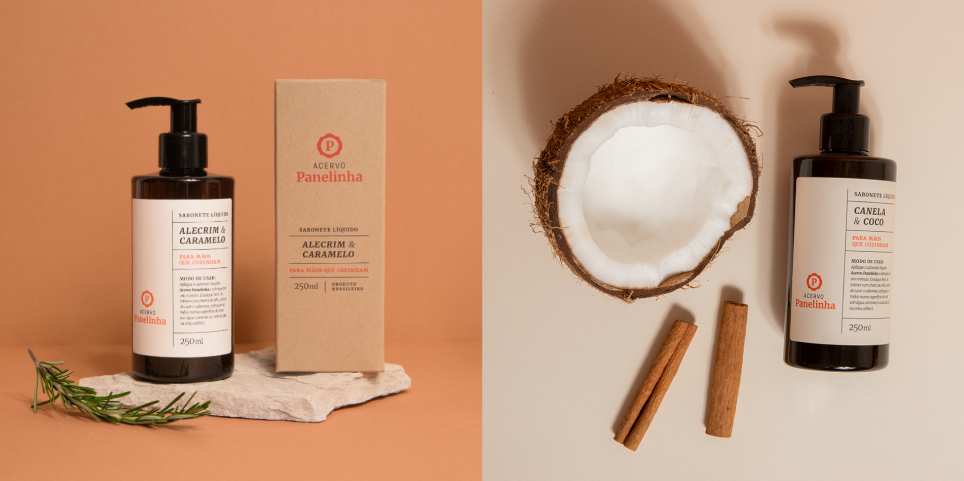 {FEITO EM PARCERIA COM A MELT® DESIGN} Não dá para falar sobre quais projetos mais nos orgulhamos em fazer e não citar a linha de sabonetes líquidos da Panelinha. Afinal, não é todo dia que se tem o prazer de co-criar com a Rita Lobo, uma das chefe de cozinha mais queridas do país. Só quem cozinha sabe da frustração em ficar com as mãos com cheiros de alho e cebola e coloridas por abóbora, açafrão e curry… Então, o produto chega com uma proposta bastante inovadora: um sabonete pensado especialmente para as mãos que cozinham. Com quatro combinações de aromas inspiradas nos perfumes da gastronomia (especiarias, ervas e frutas), os sabonetes neutralizam os cheiros que ficam nas mãos e limpam sem agredir a pele. Nesse projeto, desenvolvemos as embalagens e chegamos nesse resultado que, além de tudo, decora e traz leveza ao ambiente.